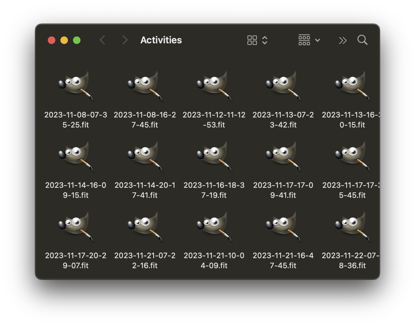 Paras tapa lähestyä ongelmaa on kuitenkin unohtaa reaaliaikaisuus. Kun kytken Garminini (Edge 530) kiinni macbookkiin, huomaamme että kansiossa /Volumes/GARMIN/Garmin/Activities on paljon jännää dataa: